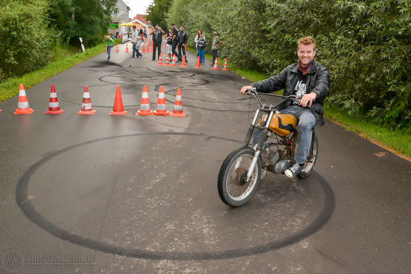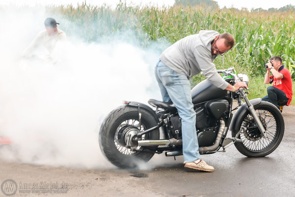 Nach dem das Sommerfest im letzten Jahr so guten Anklang bei den Bewohnern von Dermsdorf gefunden hat, beschlossen die Organisatoren das letztjährige 1. Treffen der Bikerfreunde aus Dermsdorf und der Region Sömmerda in diesem Jahr zum Sommerfest zu wiederholen. Mit den Bikerfreunden aus Gera und der Region Sömmerda vergrößerte sich das 2. Treffen in diesem Jahr auf eine stolze Zahl von etwa 40 Hobby-Biker, welche sich zu einer gemeinsamen, ein stündigen Ausfahrt bei herrlichstem Wetter durch Region trafen. Diese führte die freien Biker durch die Orte Ostramondra, Bacha, Lossa, Wiehe bis nach Heldrungen und über Gorsleben dann zurück nach Dermsdorf. Aber nicht nur die Biker aus Dermsdorf trafen sich an diesem Nachmittag auf dem Sportplatzgelände, auch Freunde und Bekannte kamen gern mit der Familie zum Kinderfest. Für alle kleinen und großen Kinder gab es mal wieder viel zu sehen und zu bestaunen. Viele interessierte was die Hobbyschrauber innerhalb des letzten Jahres so alles an den Maschinen erneuert oder umgebaut hatten. So stellte man fest, dass es seit kurzem eine Neue Baustelle gibt. Die Jugend aus dem Ort schraubt mal wieder und dieses Mal soll aus einer defekten alten Maschine eine Art Tricke entstehen. Die Baustelle vom letzten Jahr ist inzwischen fertig gestellt und erstrahlt nun im neuen Glanz. Für alle Kinder ob groß oder klein hatte man zum diesjährigen Fest neben der großen Hüpfburg noch zwei Trampoline organisiert, so dass sich alle kräftig austoben konnten. Auch Wettkämpfe wurden in diesem Jahr wieder ausgetragen. Neben den beliebten Spielen „Motorweitwurf“ und dem „Kunsbike fahren“ gab es die neue Disziplin „Nägel einschlagen“ mit einem offenen Hammerkopf, wobei der Nagel nicht krumm werden durfte. Ostmobil-Richter stellte in diesem Jahr wieder seinen mobilen 601er Trabigrill für das Fest zur Verfügung und so staunten alle Gäste als es neben Rostbratwurst und Brätel in diesem Jahr noch Spanferkel vom Grill gab. Auch den ADAC-Jugendsport luden die Dermsdorfer zu Ihrem Fest ein. Dieser rollte mit Spielgeräten für alle Kinder und einer mobilen Kartbahn zum Fest an. Schon jetzt freuen sich alle Beteiligten und Gäste auf das nächste Sommerfest. Da Dermsdorf im kommenden Jahr 2015, die 600 Jahrfeier begeht, soll in diesem Rahmen; das Sommerfest in Zusammenarbeit mit dem Ortschaftrat und dem Kultur und Freizeitverein aus Dermsdorf ausgerichtet und ein gemeinschaftliches Festwochenende gestaltet werde.