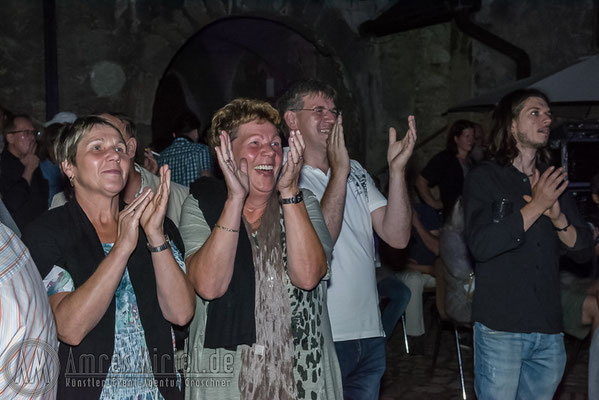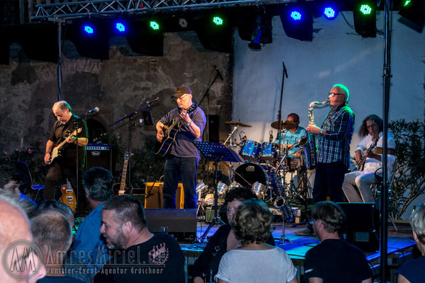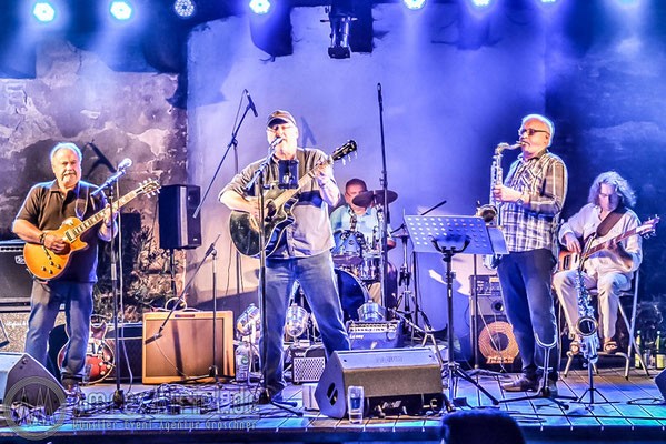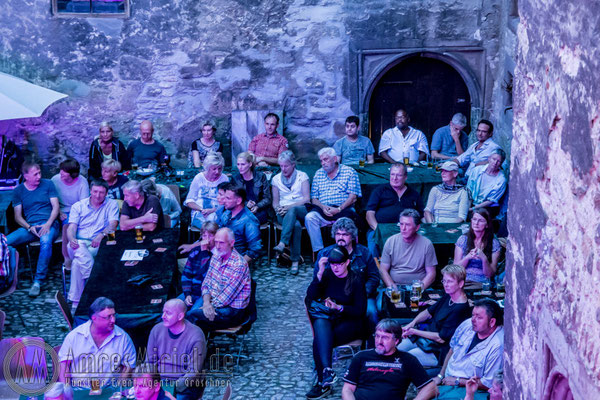 Kannawurf den 29.08.2015: um 15 Uhr begann das 5. Bluesfest auf Schloss Kannawurf. Nach und nach füllten sich die Stühle an den Tischen im Innenhof, so dass bereits um 15.30 der größte Teil der Sitzplätze belegt war. Doch der Besucherstrom nahm kein Ende und so wurden weitere Stühle aufgestellt. Los ging es mit dem Konzert von Simple Man dem Guitar Duo aus der Region Sömmerda. Ab 17.30 folgte dann das Konzert von DOGMA'N aus Weimar welche schon Konzerte in Polen, Niederlande, Rumänien, Österreich aber Auftritte auf Festivals wie Woodstock Forever Waffenrod, Cucuma Festival Gotha, Live Jazz Festival Bad Hersfeld oder Power Blues Festival Berlin bespielten. Nicht wenige weitere Besucher reisten wegen der Band Kraftverkehr an. Die Special Guests: Günter Conrad am Schlagzeug, Manfred Palm am Saxophon, Siegbert Müller Leadgitarre, Peter Gesang und Norbert Nitsche Sänger und Frontmann der Band verstanden es in gewohnter Art den Blues auf den Punkt, mit Rock-Attitüde und filigranen Gitarrensoli zu spielen. Selbst mit den einen oder anderen eigenen Song kamen zu den vielen Fans, an diesem Abend, mit Sicherheit noch einige hinzu. Im Anschluss ging man dann zur gemütlichen Blues-Session mit allen Gästen, welche Lust darauf hatten über.