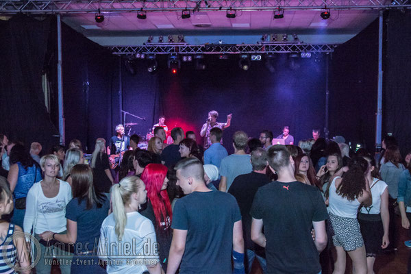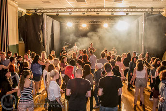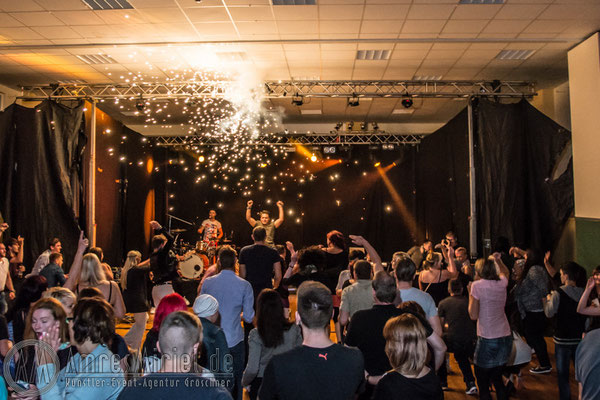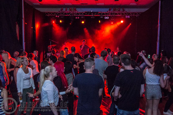 Und es ist Sommer, die Nächte werden heller, die Haut brauner und die eisgekühlten Getränke schmecken besser! Wie in jeden Jahr haben die ‚Mitglieder der Kirmesgesellschaft Magdala keine Mühen geschaut um eine Sommernacht der Extraklasse vorzubereiten. Da es an diesem Samstag allerdings eine Sturmwarnung gab musste die Abendveranstaltung mit der Band Excite zwangsweise schnell ungeplant werden, denn der Berg auf dem der Tanzabend eigentlich stattfinden sollte, bot bei diesen Windgeschwindigkeiten nicht den nötigen Schutz. So entschied man sich das Konzert in die Turnhalle am Sportplatz zu veranstalten. Schnell wurden die Technik der Ton- und die Lichtanlage aufgebaut und schon konnte es nach ein paar Soundproben los gehen. Die zahlreich erschienenen Gäste drängten nach und nach in den Saal bis an die Bühne. Die Kirmesgesellschaft versprach in ihrer Ankündigung auf Facebook wieder einmal nicht zu viel. Mit ihrem rockigen Sounds, viel Witz und einer tollen Lichtshow bescherten die Mitglieder und Crow der Band Excite allen partyhungrigen Gästen eine tollen und heiteren Abend zum Grottenfest.