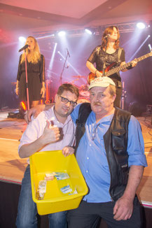 Steffen Geschoneck (r) rief im Namen aller Mannstedter zu einer spenden Aktion für das Kinderhospiz Mittelthüringen auf. Während der Samstagabend Veranstaltung trat er vor die Gäste des Abends und bad darum, das sich jeder ein Herz nähme und eine kleine Spende in einen bereit gestellten Spendentopf geben möge.