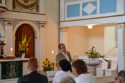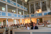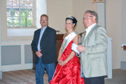 Mit einem Konzert in der Coudray-Kirche von Prof. Matthias Eisenberg am Donnerstag den 10.07.2013 um 19 Uhr an der Schulze-Orgel eröffnete der Orgelförderverein in der Reihe des Thüringer Orgelsommer das 50. Kirschfest in Rastenberg. Bis Montag den 14.07. wird in diesem Jahr wieder einiges auf dem Programm stehen. So wurde am Freitag um 19.30 Uhr ein regionaler Festgottesdienst in der Coudray-Kirche abgehalten, nachdem es um 21.00 Uhr mit einem Fackelumzug von der Coudray-Kirche zum Festplatz ging, wo dann das 50. Rastenberger Kirschfest im Festzelt feierlich mit Grußworten der Kirschfestprinzessin Franziska und Bürgermeister Uwe Schäfer eröffnet wurde. „Vom Killiansfest zum Kirschfest“ so kündigte der Bürgermeister der Stadt Rastenberg das 50. Kirschfest auf der der Homepage der Stadt im Vorfeld an. So wurden alle Gäste des Festwochenendes auf einer Zeitreise durch die Geschichte der Stadt und deren Ortsteile vorbereitet, denen dieses 50. Kirschfest 2014 gewidmet ist. Schon das traditionelle Donnerstagskonzert, der Fassbieranstich und die große Eröffnungsparty im Festzelt mit der Showband „Klangkarat“ waren die ersten Highlights des Kirschfestes. Aber das Konzert in der Coudray-Kirche wurde nicht nur wie traditionell üblich als Eröffnungskonzert zum Kirschfest genutzt, es startete an diesem Abend auch ein weiteres Projekt des Orgelfördervereins zur Erhaltung und Restauration der Schulze-Orgel. Die frühromanische Orgel aus dem Jahre 1827 sucht von nun an 1138 Paten. So kann sich jeder Gast und Gönner, von diesem Donnerstag an, an der Rettung der Orgel mit Beträgen schon ab 10 € beteiligen. Das Projekt Orgelpatenschaft steht unter der Schirmherrschaft von Christian Carius Thüringer Minister für Bau, Landesentwicklung und Verkehr. Während des Improvisationskonzertes erklangen Stücke von Robert Schumann, Felix Mendelssohn Bartholdy und Johannes Brahms. Der erste Satz des Konzertes wurde mit Werken von Johann Sebastian Bach besetzt. Auf Grund der noch defekten C-Flöten wurde improvisiert und alle Stücke von C auf die Tonlage D abgeglichen, so dass es wieder ein harmonisches Zusammenspiel der einzelnen Orgelflöten ergab. Vor Beginn hielt Herr Schneider vom Orgelförderverein eine kurze Einleitung zum Konzert, dem Künstler und dem neuen Projekt. Gern begrüßte er auch alle Gäste des Konzertes, wünschte allen viel Freude und lud an dieser Stelle auch auf einen Schluck Rastenberger Rotwein, gebackene Orgelflöten und ein Gespräch im Eingangsbereich der Kirche ein. Nach dem von Jahr zu Jahr mehr Gäste zum Donnerstagskonzert in die Coudray-Kirche kommen sollen nun auch wieder die Friedensgebete traditionell wie vor 100 Jahren vollzogen und einmal Monatlich stattfinden. Dies berichtete mir Frau Redmann. Abschließend zum Konzert sprachen der Bürgermeister Herr Schäfer Bürgermeister Rastenberg und Herrn Schneider vom Orgelförderverein Worte des Dankes für das erscheinen und das herrliche Konzert, " Man glaubt nicht wenn man solch ein harmonisches Konzert hört, dass die Orgel kaputt ist." so Herr Schäfer. Zum Freitagskonzert reiste eigens der Altpfarrer Gilbert Stecher an, welcher zusammen mit Pfarrer Siemon den Kantatengottesdienst mit viel Musik abhielt. Herr Stecher hielt auch die diesjährige Festpredigt. Unter den Gästen war auch Frau Christine Lieberknecht welche dann im Fackelumzug mit zum Festzelt fuhr, wo sie ein paar Grußworte zur Eröffnung hielt. Wo es dann mit der Band Klangkarat festlich durch die Nacht ging.