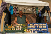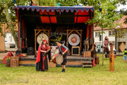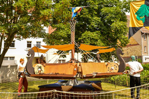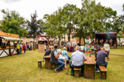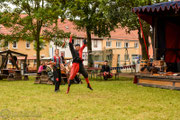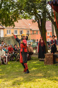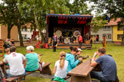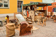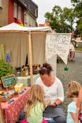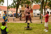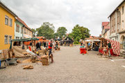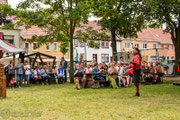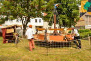 Ritterschmaus, Flammkuchen, Falafel bis hin zum Thüringer Mutzbraten. Blickfang war an diesem Wochenende das handbetriebene Kinderkarussell aus der Wikingerzeit. Beeindruckend wie man mit Mechanik und ein wenig Muskelkraft ein ganzes Karussell ohne Motorik betreiben kann. Aber auch viel Musik und allerhand Spektakel wurde während des gesamten Samstag und Sonntag auf dem Anger geboten, so dass für klein und groß, für alt und jung, einfach für jeden etwas dabei war und an beiden Tagen, bereits weit vor Marktbeginn 11 Uhr die ersten interessierten Besucher erschiene. So auch IRIS und MICHAEL aus Sömmerda, welche sehr begeistert vom Markt, dem Marktleben und dem Abendprogramm waren. Nachdem sie am Samstagabend schon da waren zog er die beiden am Sonntag noch einmal wieder zum Angerfest. "Kann gern jedes Jahr stattfinden" so die beiden zu mir.