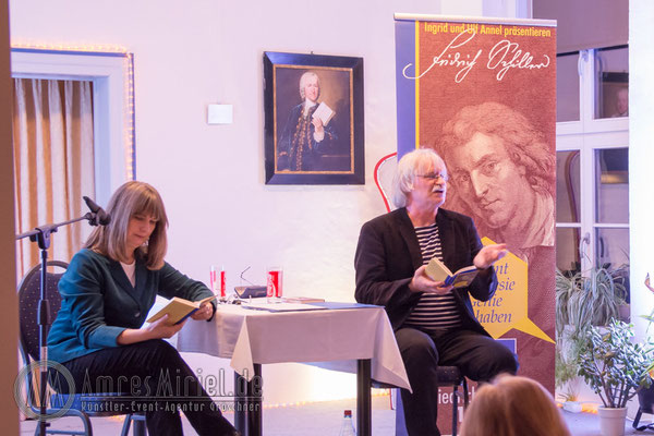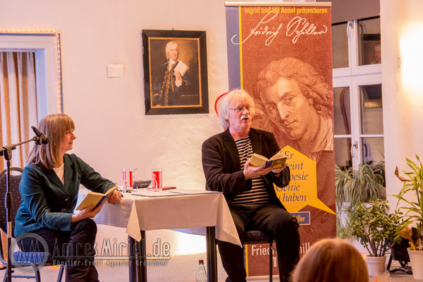 Am Samstag den 12.02.2016 fand im Gutshaus Tunzenhausen ein Abend der Literarischen art statt. Im Dezember brachten das Autoren-Paar Ingrid und Ulf Annel ihr neues Werk „Anekdoten über Schiller“ herraus. Innerhalb von nicht einmal 3 Monaten regergierten und schrieben die beiden ihr zweites Buch. Dies ist nicht nur eine Biografie Schillers. Voller leben und witzigen Anekdoten, sondern es enthält auch Schriften, was den Menschen Schiller ausmacht. Nach dem Buch "Anekdoten über Ringelnatz" ist es das zweite Buch des Autoren-Paar und ist über den Eulenspiegelverlag Berlin entstanden.