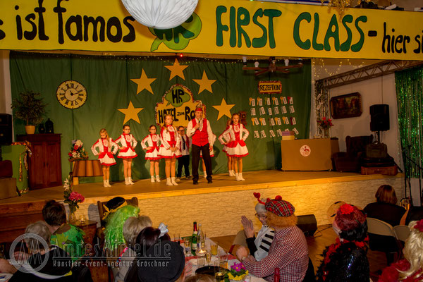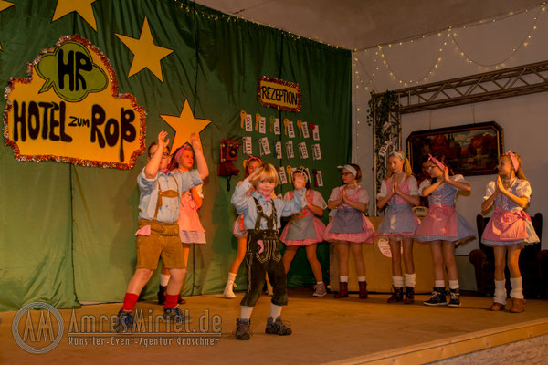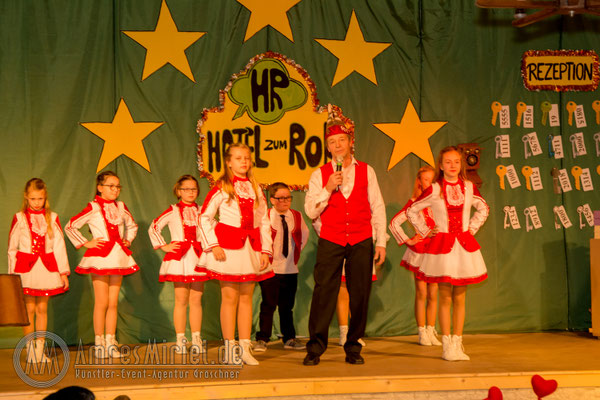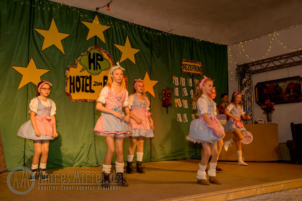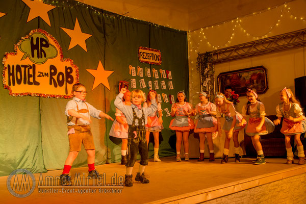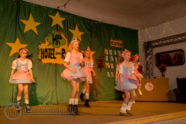 Mit einem sehr anspruchsvoll gestalteten Programm führten die Narren hinter die Kulissen des Hotels und versprachen einiges an Lachern. Auch die Kinder des Kinderballetts und die Teenys des Jugendballetts waren wieder mit dabei. Ab 4 bis 11 Jahren tanzen die kleinsten im Ballett. Mit dem Lied „jetzt wird`s a bissel laut“ im niedlichen Dirndl merkte man schon die Aufregung vor so vielen Gäste. Und da einige ganz neu im Verein sind gab es auch gleich noch eine Zugabe. Auch wenn es mit der Verständigung mit dem Porte einige Sprachprobleme gab, waren die Gäste aus aller Welt mit ihrer Zimmerbelegung doch ganz zufrieden.