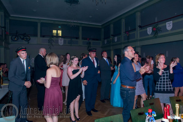 Traditionell eröffneten die Paare des Traditions- und Kirmesverein Udestedt den Samstagabend der Kirmes 2015. In den hübschen Kleidern und traditionellen Anzügen konnte Ihnen wie in den Jahren zuvor auch an diesem Abend keiner die Show stehlen. In diesem Jahr fanden sich wieder ganze 12 Kirmespaare. Gemeinsam mit vielen Gästen und befreundeten Kirmesvereinen tanzten sie durch die Nächte von Freitag bis Sonntag. Traditionell wurde auch in diesem Jahr wieder auf dem Saal des Weimarischen Hof gefeiert. Bereits am Freitag zur KirmesParty mit DJ Paul Köcher wollten die meisten Gäste kein Ende finden und bis in die Morgenstunden feiern. Für die musikalische Umrahmung des Samstagabends sorgte die Band LiveStyle. Bereits 19 Uhr haben sich alle Kirmespaare am Kirmesplatz getroffen um die letzten Vorbereitungen für den Abend zu treffen. Auch das Wetter war den Vereinsmitgliedern wohl gesonnen. Von Donnerstag an, als die Birken gestellt wurden, bis Samstag während des Zugs durch Udestedt zum Ständchen singen, schien die Sonne. Somit wurde wieder auf das kühlende Nass zurück gegriffen, um selbst nicht zu überhitzen. Nur am Samstag gegen 18 Uhr gab es einen kleinen Regenguss. Alles in allem verlief die Kirmes in diesem Jahr ruhig. Zu ruhig. Keine Vorkommnisse, nichts zu beklagen. Selbst unter den Kirmespaaren verlief alles reibungslos. So das der Burschenvater in diesem Jahr alle Mühe hatte eine Festrede für die Kirmes-Beerdigung am Sonntag zu schreiben.
