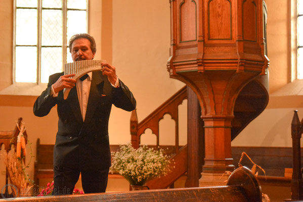 Ein herrlich melodiöses Konzert mit Panflöte gab Dimo Dimov am Samstag den 11.10.2014 in der, wie er selbst fest stellen durfte, wunderschön akustischen Kirche von Walschleben. Viele Gäste folgten der Einladung sich, ab 17 Uhr, Alte Meister wie Ludwig van Beethoven, aber auch klassische Melodien des Samba-Tanzes oder Filmmusik auf eine außergewöhnliche Art anzuhören und ließen sich vom Klang der Panflöhten mit denen Dimo Dimov spielte verzaubern. Neben der klassischen Bambuspanflöte, welche der gebürtige Bulgare spielt, erklang unter anderem bekannte Werke wie „Time to say goodbye“, Ave Maria“, oder „Ode an die Freude“. Das Besondere, Herr Dimo Dimov berichtete mir, er ist der weltweit einige Künstler, welcher auf einer Porzellan-Panflöte aus echtem Thüringer Porzellan spielt und sich diese Idee im Jahr 2000 verwirklichen konnte. Bekannt ist Dimo Dimov bereits seit den 90er Jahren aus Funk und Fernsehen und trat während seinen über 25 Jahren im professionellen Bereich der Unterhaltungsmusik bereits im ZDF zum Sonntagskonzert, Freut Euch des Nordens im NDR und vielen weiteren Shows auf.